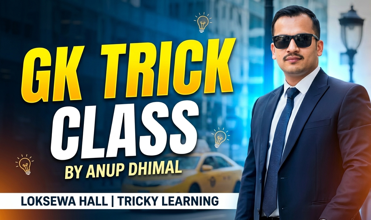 लोकसेवा तथा अन्य प्रतिस्पर्धात्मक परीक्षामा सफल हुन सामान्य ज्ञान (GK) अत्यन्त महत्वपूर्ण विषय हो। यस कक्षामा जटिल GK विषयवस्तुलाई सजिलो, रमाइलो र ट्रिक (Shortcut) विधिबाट सिकाइनेछ, जसले गर्दा विद्यार्थीहरूले छिटो सम्झन र लामो समयसम्म याद राख्न सक्नेछन्।